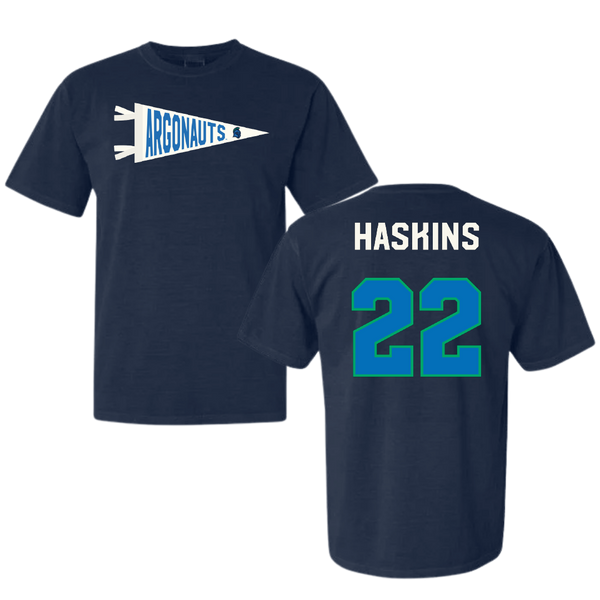 University of West Florida Soccer Navy Pennant Comfort Colors Tee - #22 Chase Haskins