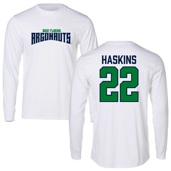 University of West Florida Soccer White Classic Long Sleeve - #22 Chase Haskins