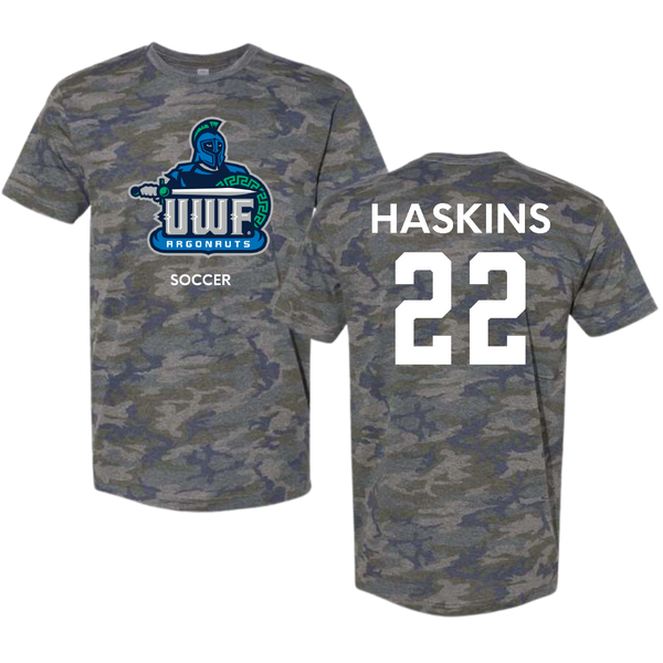 University of West Florida Soccer (M) Vintage Camo Tee - #22 Chase Haskins