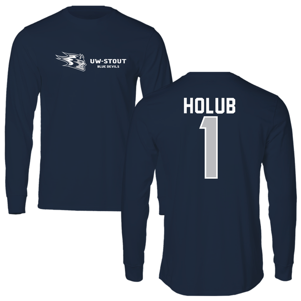 University of Wisconsin-Stout Soccer Navy Performance Long Sleeve - #1 Chase Holub