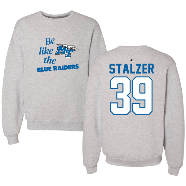 Middle Tennessee State University Ice Hockey Light Gray Be Like Us Crewneck - #39 Clay Stalzer