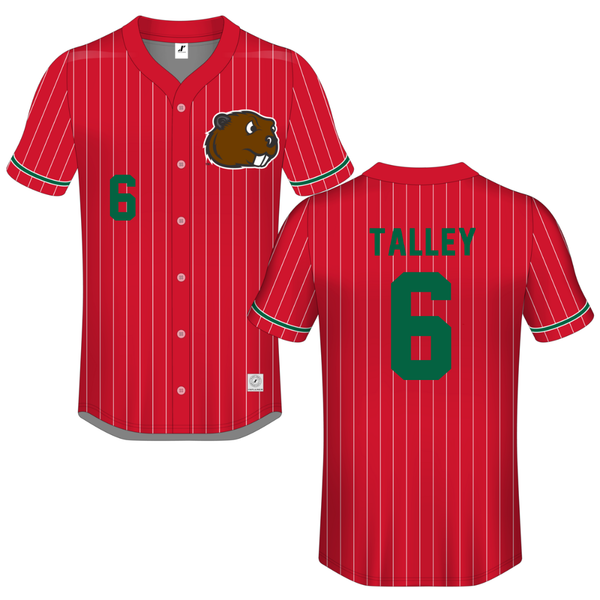 Minot State University Red Pinstripe Button-Down Jersey - #6 Cole Talley