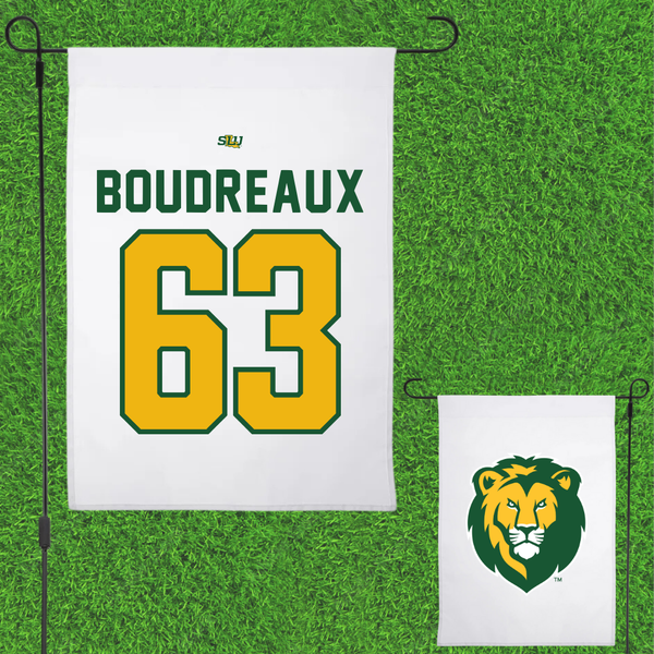 Southeastern Louisiana University Football White Garden Flag - #63 Corin Boudreaux