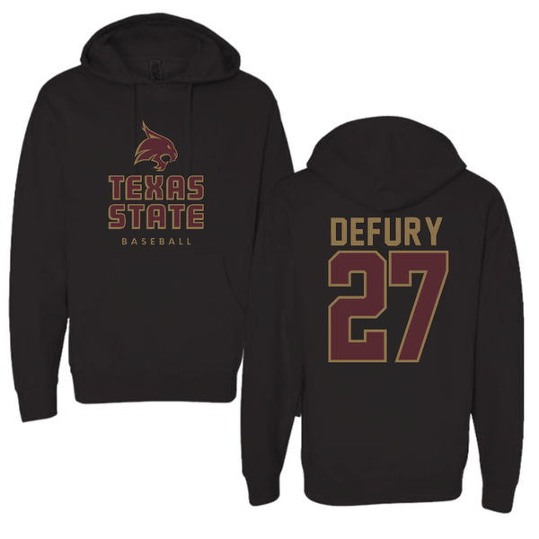 Texas State University Baseball Black Hoodie - #27 Coy DeFury