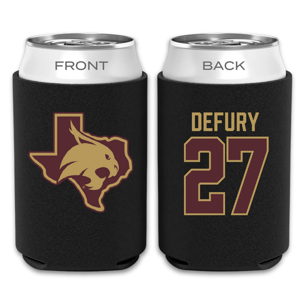 Texas State University Baseball Black Can Cooler - #27 Coy DeFury