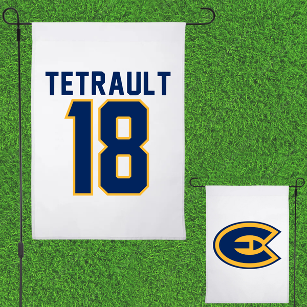 University of Wisconsin-Eau Claire Football White Garden Flag - #18 Dale Tetrault
