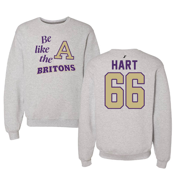 Albion College Football Light Gray Be Like Us Crewneck - #66 Dalton Hart