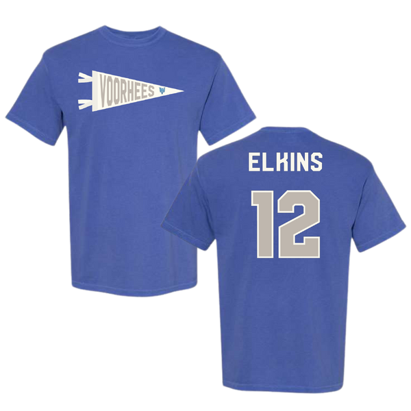 Voorhees University Basketball Blue Pennant Comfort Colors Tee - #12 Darius Elkins