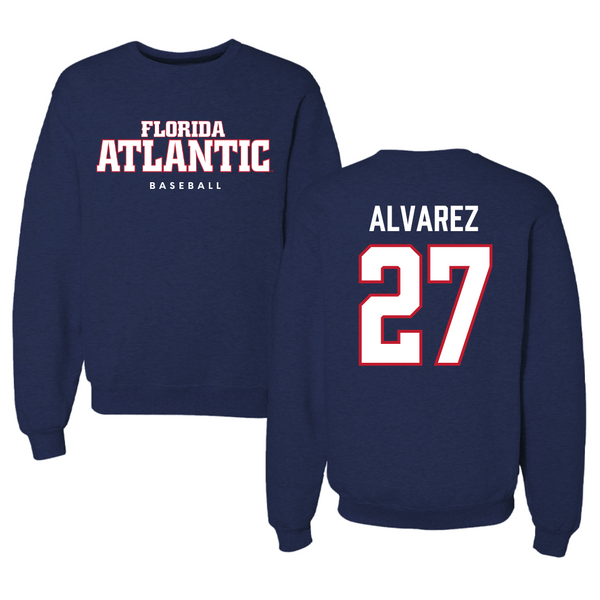 Florida Atlantic University Baseball Navy Crewneck - #27 David Alvarez