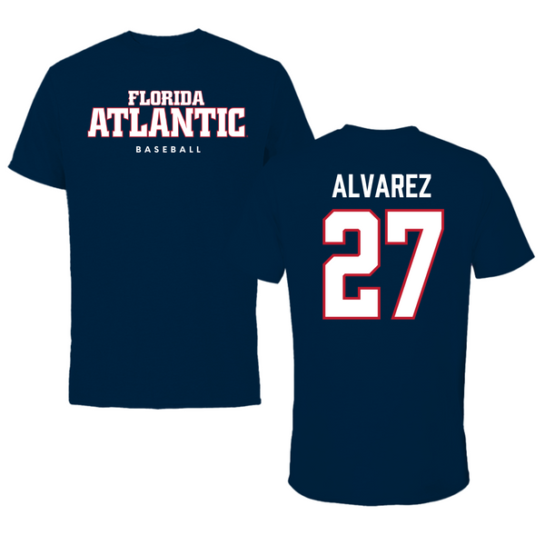 Florida Atlantic University Baseball Navy Block Tee - #27 David Alvarez