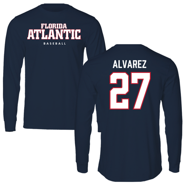Florida Atlantic University Baseball Navy Block Long Sleeve - #27 David Alvarez