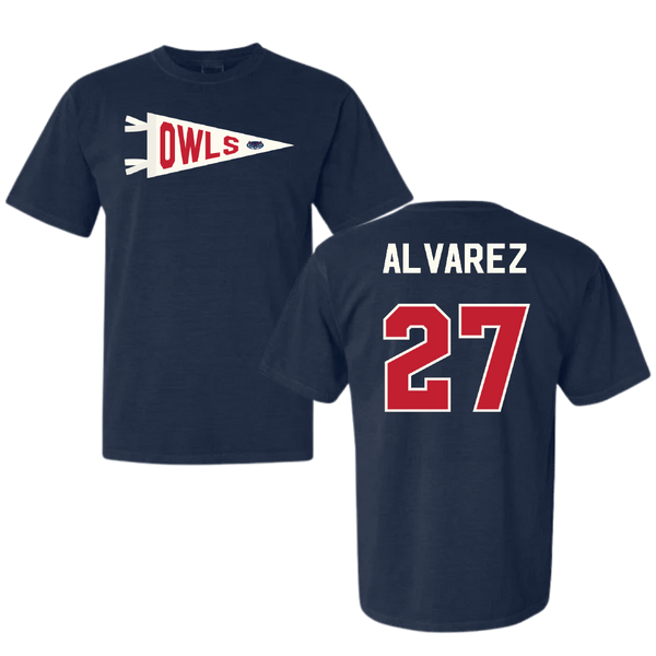 Florida Atlantic University Baseball Navy Pennant Comfort Colors Tee - #27 David Alvarez