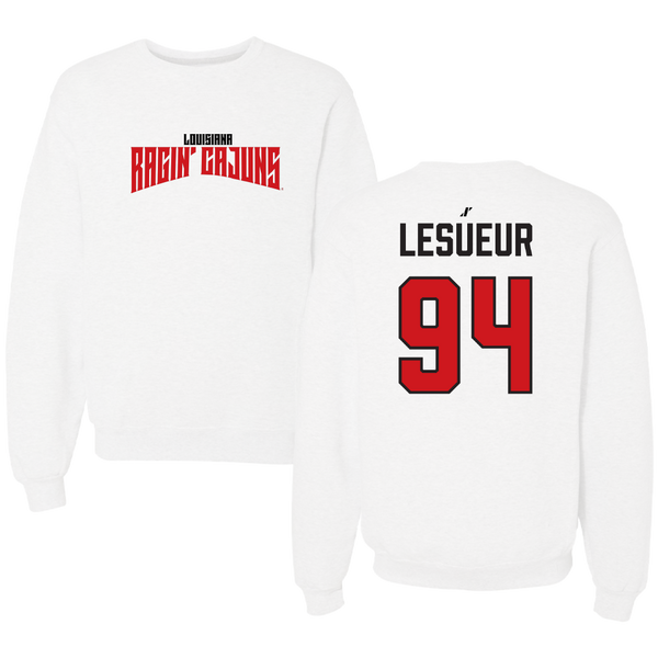 University of Louisiana at Lafayette Football White Classic Crewneck - #94 DeAntonio Lesueur