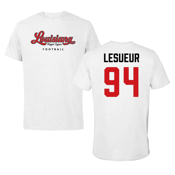 University of Louisiana at Lafayette Football White Classic Tee - #94 DeAntonio Lesueur