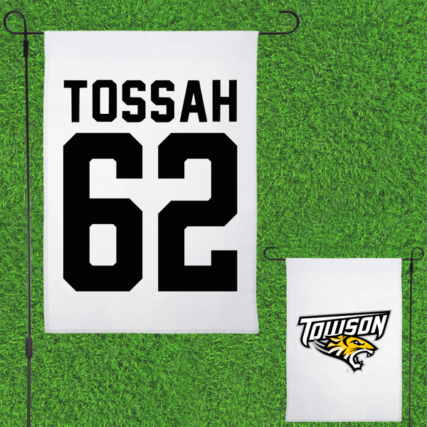 Towson University Football White Garden Flag - #62 Derick Tossah