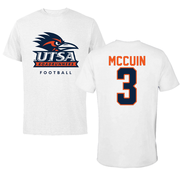 University of Texas at San Antonio Football White Tee - #3 Devin McCuin