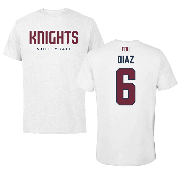 Fairleigh Dickinson University-Metropolitan Campus Volleyball White Tee - #6 Diego Diaz