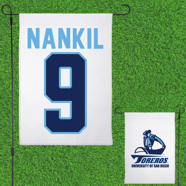 University of San Diego Football White Garden Flag - #9 Dom Nankil