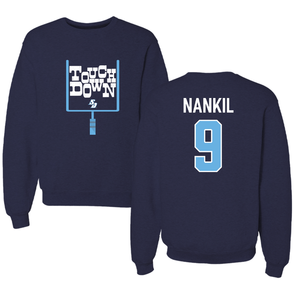 University of San Diego Football Navy Touchdown Crewneck - #9 Dom Nankil
