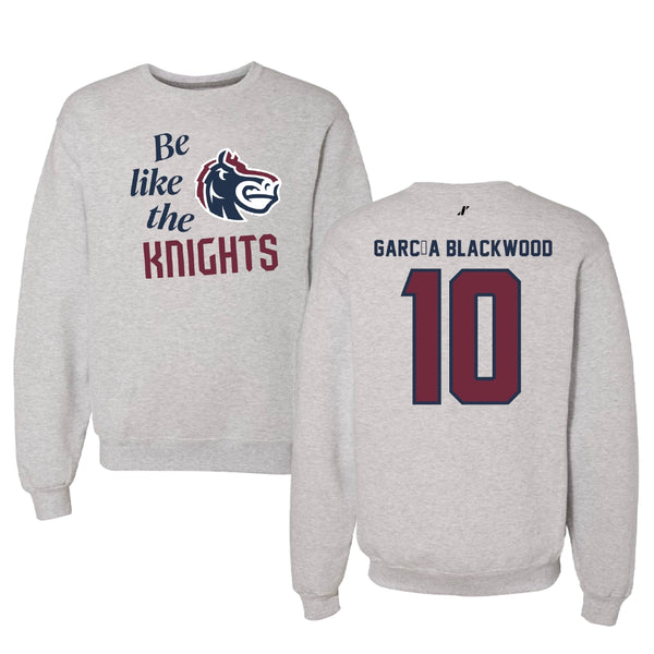 Fairleigh Dickinson University-Metropolitan Campus Basketball Light Gray Be Like Us Crewneck - #10 Dominique García Blackwood