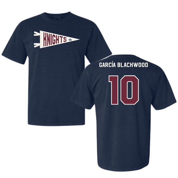 Fairleigh Dickinson University-Metropolitan Campus Basketball Navy Pennant Comfort Colors Tee - #10 Dominique García Blackwood
