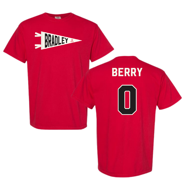 Bradley University Soccer Red Pennant Comfort Colors Tee - #0 Drew Berry
