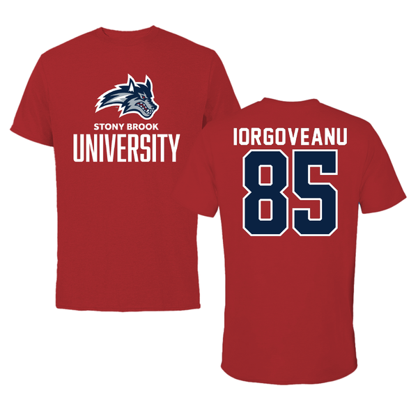Stony Brook University Football Canvas Red Tee - #85 Dylan Iorgoveanu
