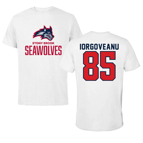 Stony Brook University Football White Tee - #85 Dylan Iorgoveanu