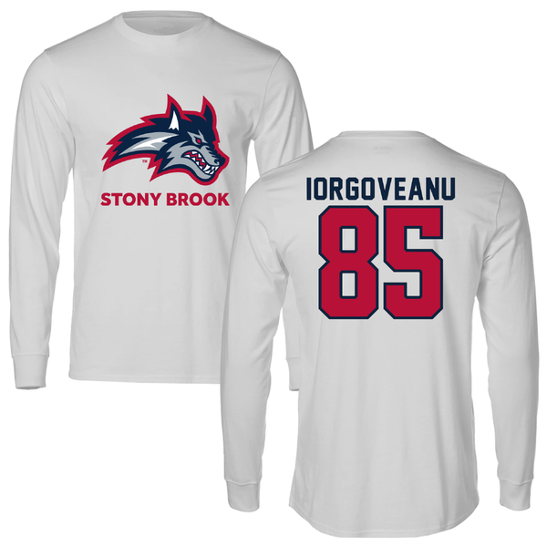 Stony Brook University Football White Long Sleeve - #85 Dylan Iorgoveanu