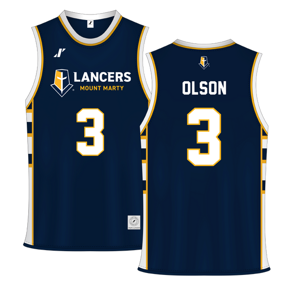 Mount Marty University Navy Basketball Jersey - #3 Eli Olson