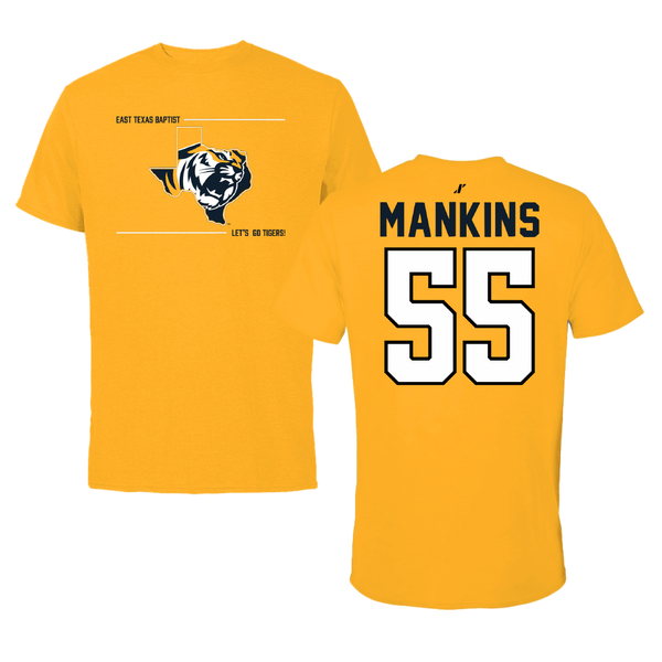 East Texas Baptist University Football Gold Tee - #55 Elijah Mankins