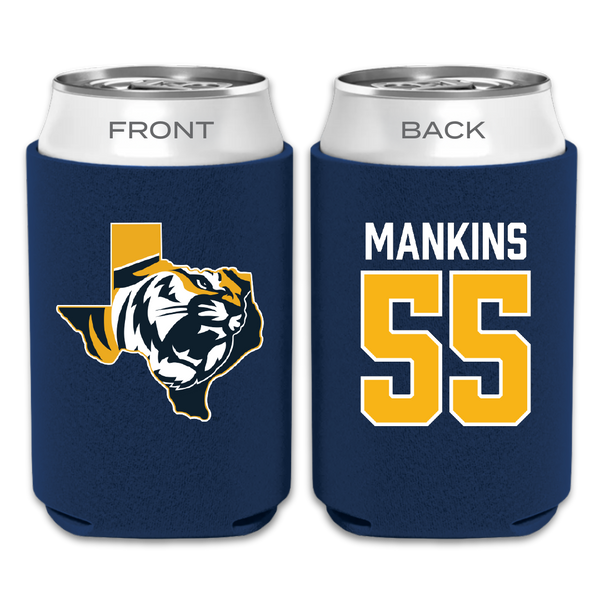 East Texas Baptist University Football Navy Can Cooler - #55 Elijah Mankins
