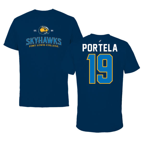 Fort Lewis College Football Navy General Tee - #19 Elijah Portela