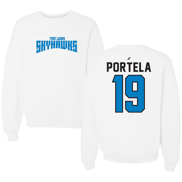 Fort Lewis College Football White Classic Crewneck - #19 Elijah Portela