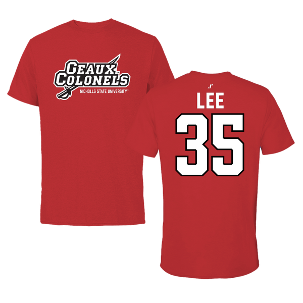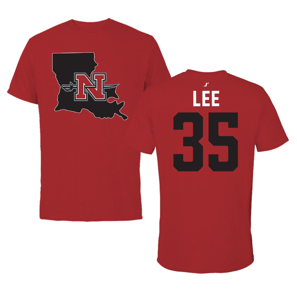 Nicholls State University Football Red General Tee - #35 Ethan Lee