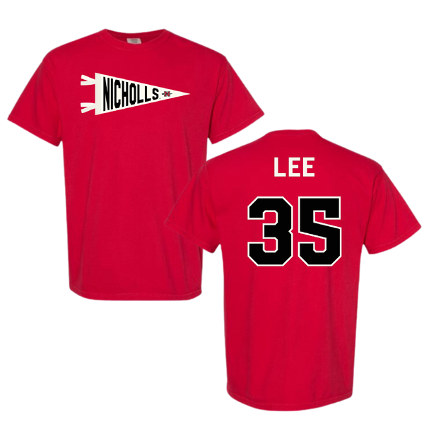 Nicholls State University Football Red Pennant Comfort Colors Tee - #35 Ethan Lee