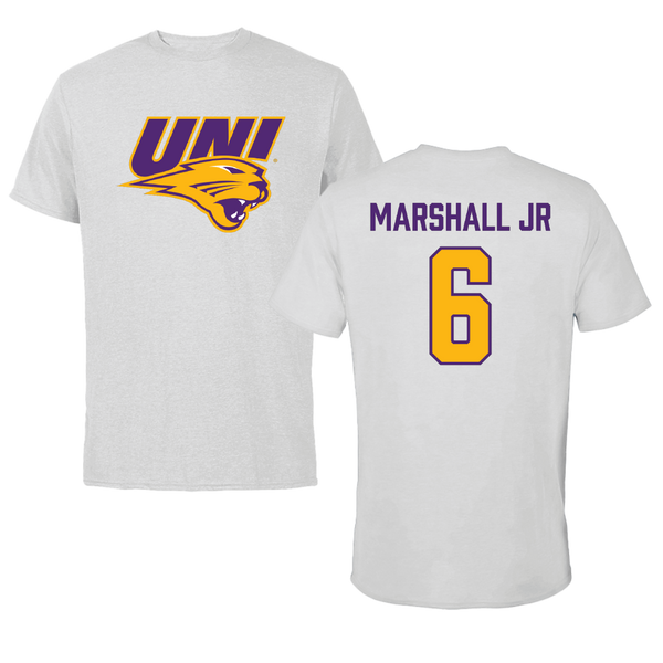 University of Northern Iowa Football Light Gray Tee - #6 Fletcher Marshall Jr
