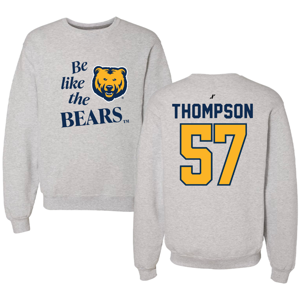 University of Northern Colorado Football Light Gray Be Like Us Crewneck - #57 Frank Thompson