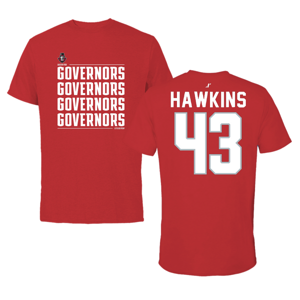 Austin Peay State University Football Red General Tee - #43 Garrett Hawkins