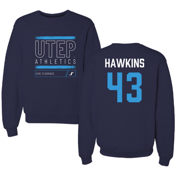 University of Texas at El Paso Football Navy Dominate Crewneck - #43 Garrett Hawkins