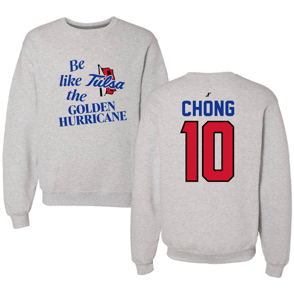The University of Tulsa Soccer Light Gray Be Like Us Crewneck - #10 Gyuwon Chong