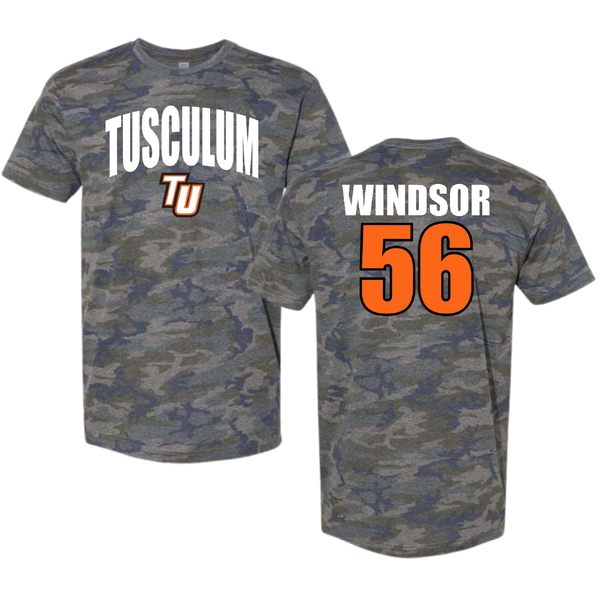 Tusculum University Lacrosse Vintage Camo Tee - #56 Hagan Windsor