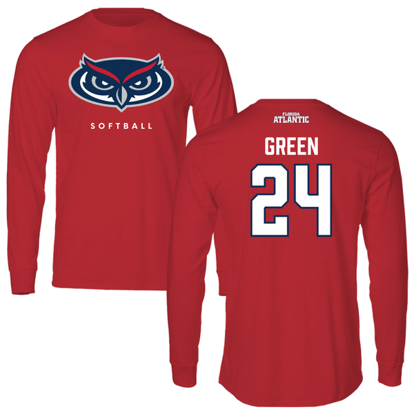 Florida Atlantic University Softball Red Long Sleeve - #24 Hannah Green