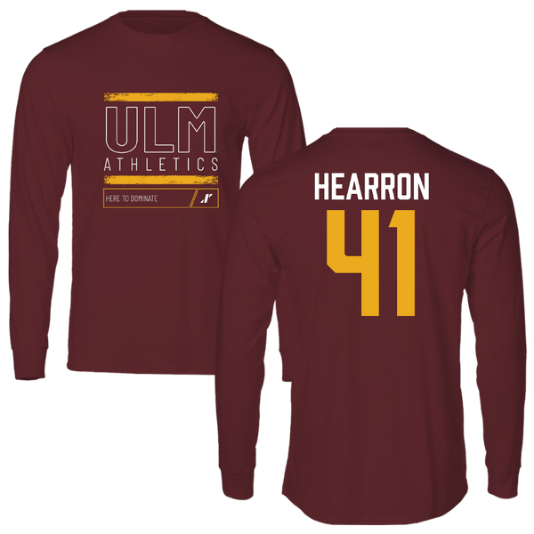 University of Louisiana Monroe Football Maroon Dominate Long Sleeve - #41 Hutson Hearron