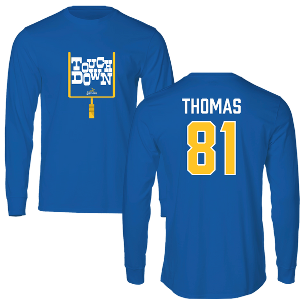 Texas A&M University-Kingsville Football Blue Touchdown Long Sleeve - #81 Ivan Thomas