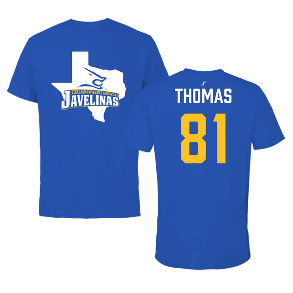 Texas A&M University-Kingsville Football Blue State Tee - #81 Ivan Thomas
