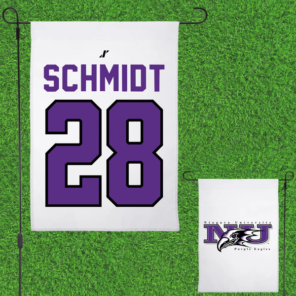 Niagara University Soccer White Garden Flag - #28 Izzy Schmidt