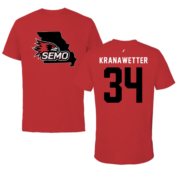 Southeast Missouri State University Baseball Red State Tee - #34 Jackson Kranawetter