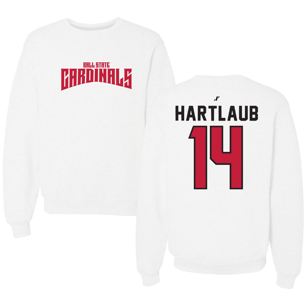 Ball State University Baseball White Classic Crewneck - #14 Jacob Hartlaub
