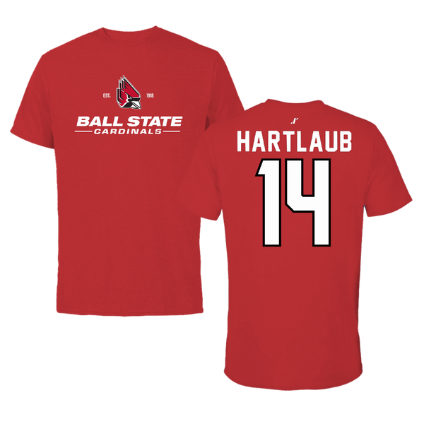 Ball State University Baseball Red General Tee - #14 Jacob Hartlaub
